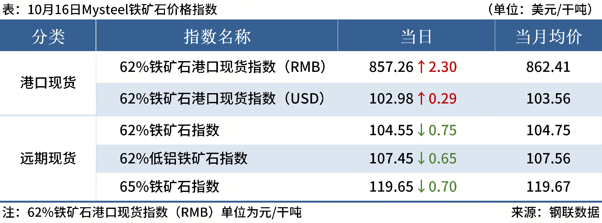 ◎ 10月16日,全国主港铁矿石成交120.70万吨,环比减3%;237家主流贸易商建筑钢材成交10.18万吨,环比增11.4%。