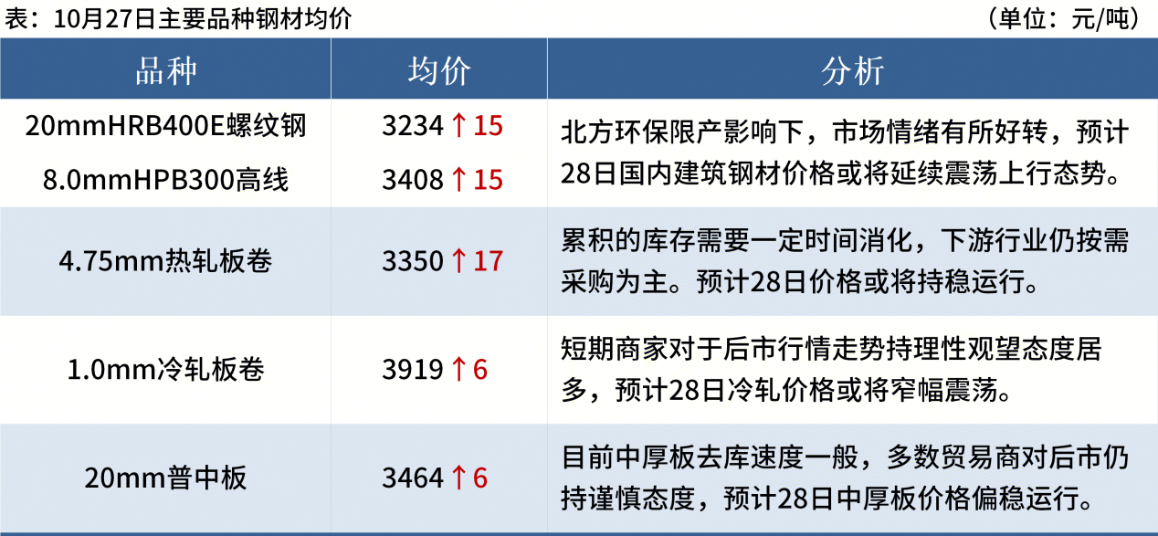 ◎ 10月27日,全国主港铁矿石成交73.00万吨,环比减9%;237家主流贸易商建筑钢材成交12.34万吨,环比增35.5%。