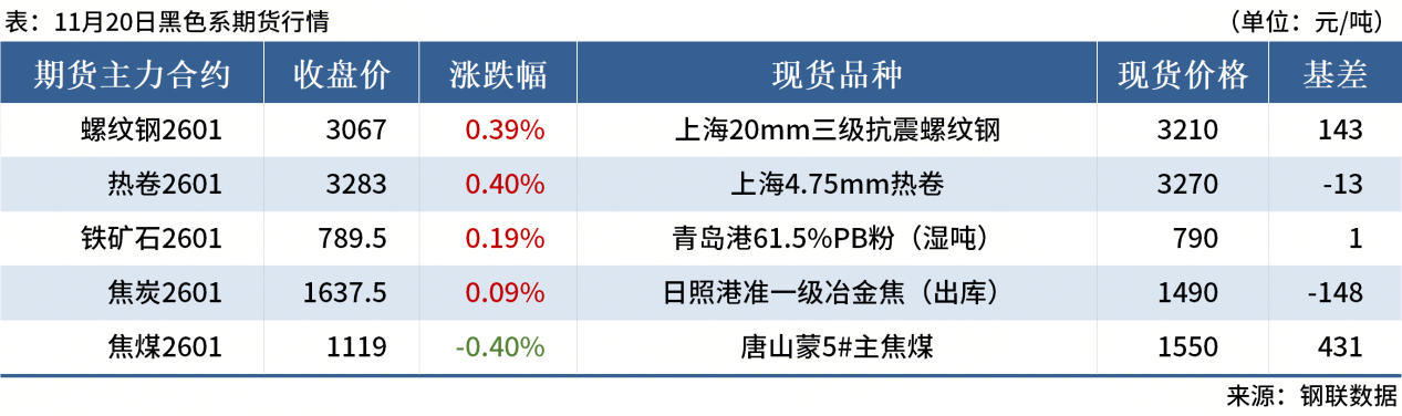 ◎11月20日,昆钢、玉昆等7家云南钢企调整省内建筑钢材品规基差加价,棒材12、14规格加价提至180元/吨,16、20、22、25规格提至100元/吨,盘螺及高线8规格提至250元/吨。详情>>