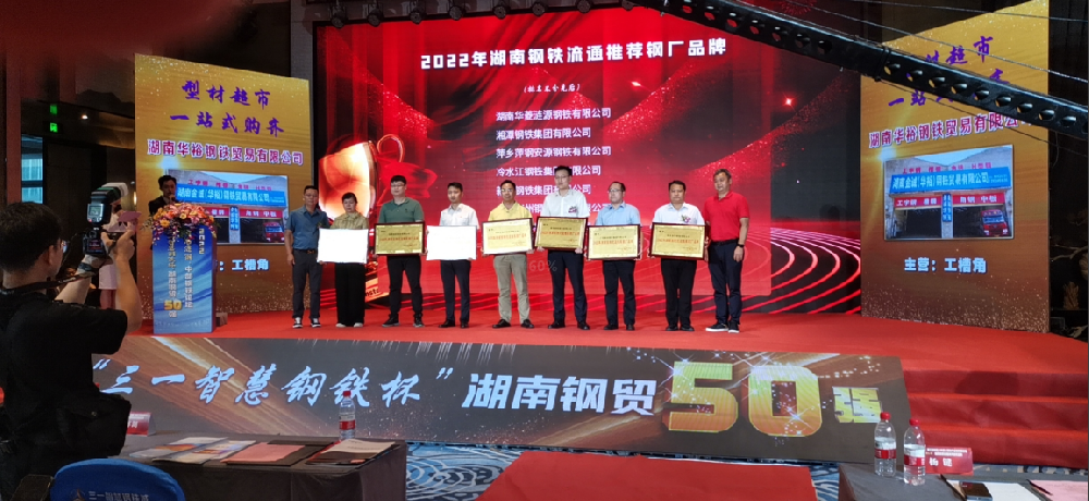 公司应邀参加“智慧涟钢”第三届中国(中部)钢铁产业链发展论坛6月23日下午,由湖南省工商联指导,湖南省金属材料商会主办,我公司协办的“智慧涟钢”第三届中国(中部)钢铁产业链发展论坛暨“三一智慧钢铁杯”湖南钢贸50强系列评选颁奖盛典在长沙隆重举行。我公司供销副总韩文涛和销售部长郭晓卫参与本次会议。我公司产品以良好的知名度···