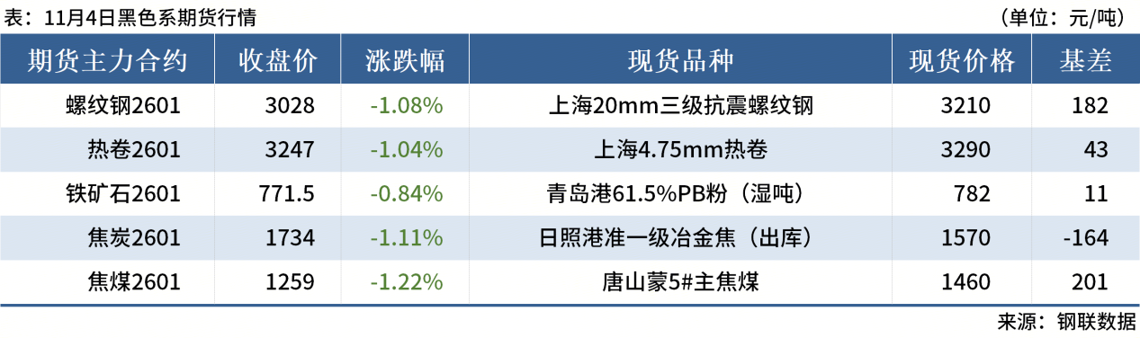 ◎11月4日,河北、天津地区部分钢厂对焦炭采购价格进行第三轮上调,幅度为50-55元/吨,执行时间2025年11月5日零点。