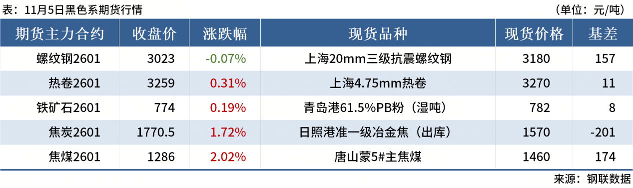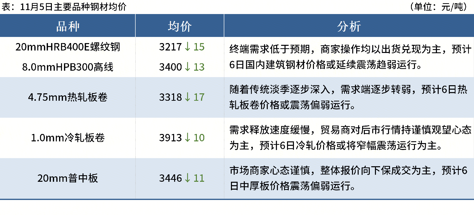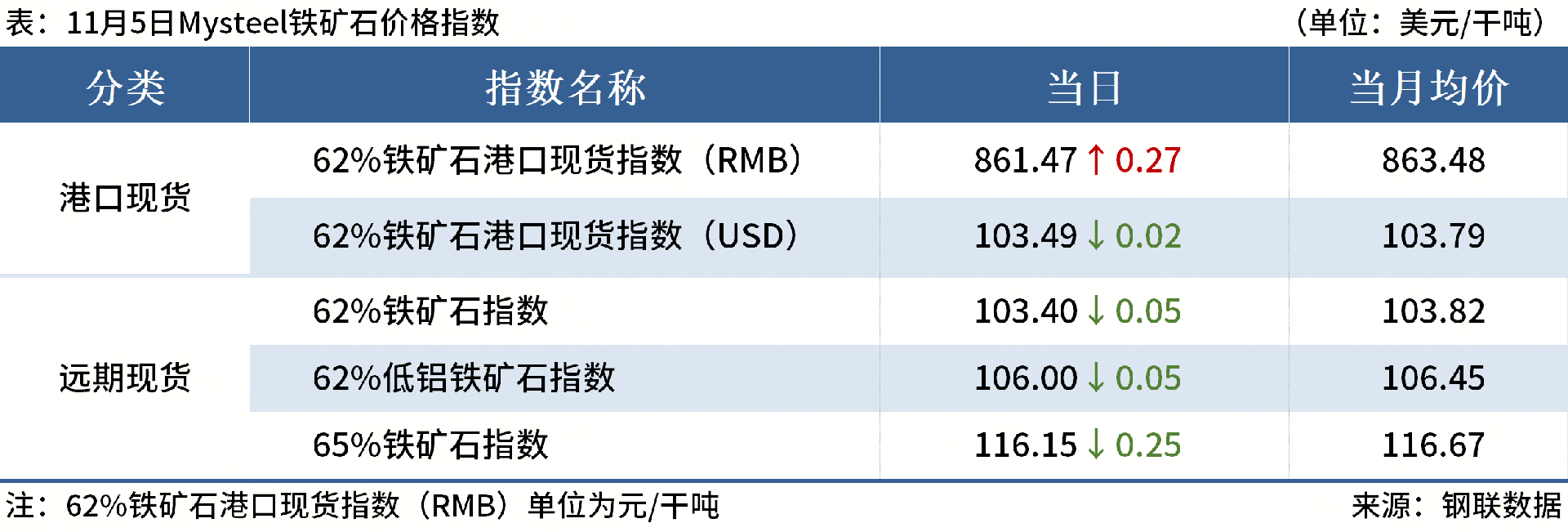 ◎11月5日,全国主港铁矿石成交108.80万吨,环比减25.5%;237家主流贸易商建筑钢材成交9.39万吨,环比增1.3%。