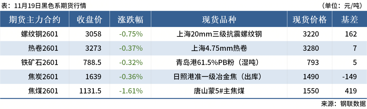 ◎11月19日,76家独立电弧炉建筑钢材钢厂平均成本为3336元/吨,日环比增加4元/吨,平均利润亏损117元/吨,谷电利润亏损12元/吨。