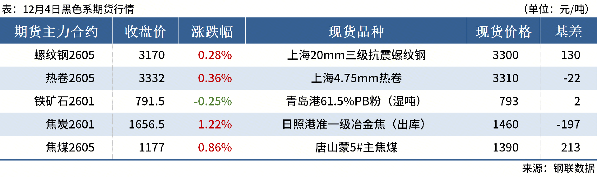 ◎12月4日,全国主港铁矿石成交126.60万吨,环比增6.3%;237家主流贸易商建筑钢材成交9.39万吨,环比增4.5%。