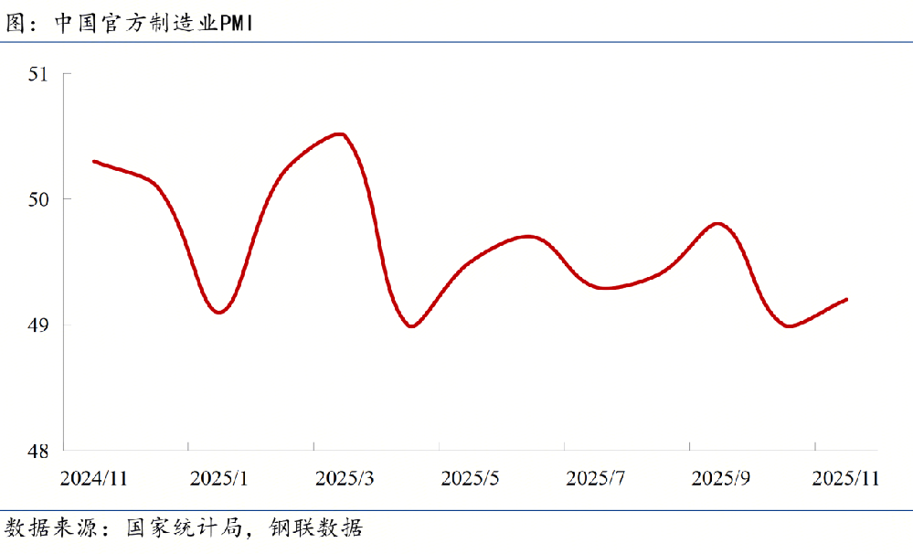 ◎ 国家统计局数据显示,11月份我国制造业PMI为49.2%,比上月上升0.2个百分点;非制造业PMI为49.5%,比上月下降0.6个百分点;综合PMI产出指数为49.7%,比上月下降0.3个百分点。