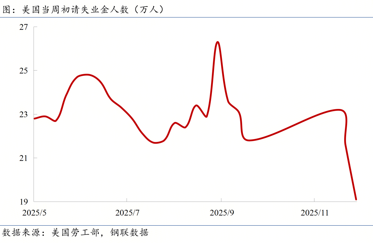 ◎ 美国劳工部官网显示,11月29日当周初请失业金人数意外降至19.1万人,远低于市场预期的22万人及前值21.8万人,突显劳动力市场韧性,与近期疲软信号形成反差。