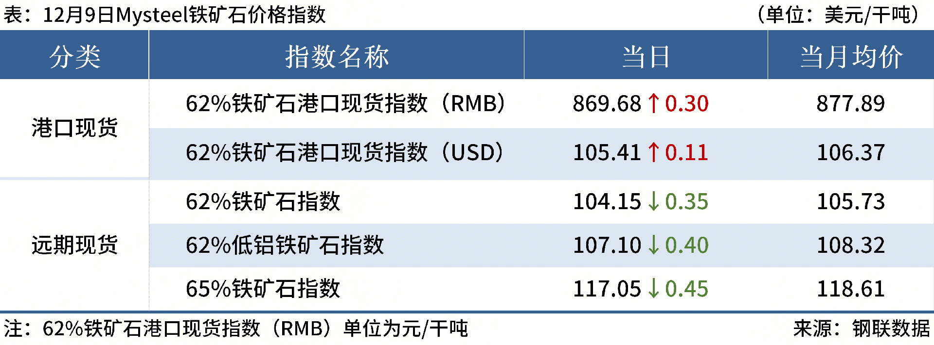◎ 12月9日,全国主港铁矿石成交113.70万吨,环比增1.2%;237家主流贸易商建筑钢材成交9.26万吨,环比减8.9%。
