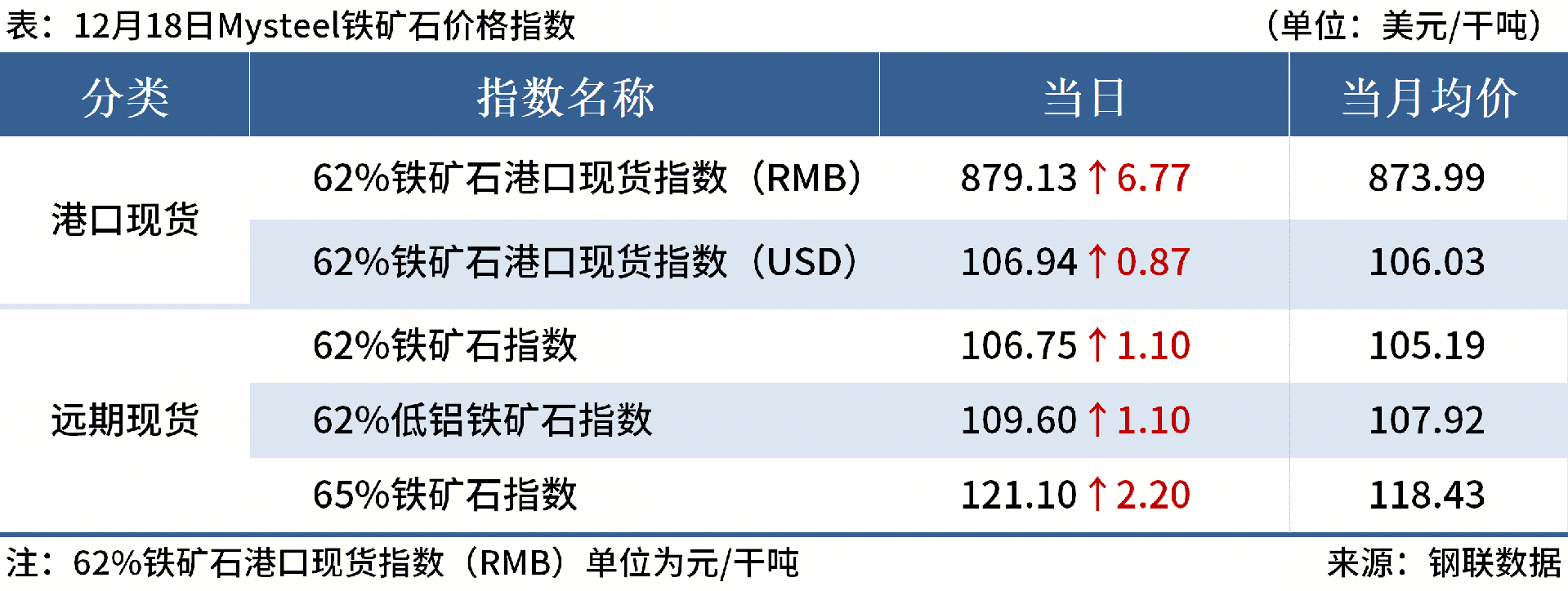 ◎12月18日,全国主港铁矿石成交98.20万吨,环比增18.2%;237家主流贸易商建筑钢材成交10.22万吨,环比增2.8%。