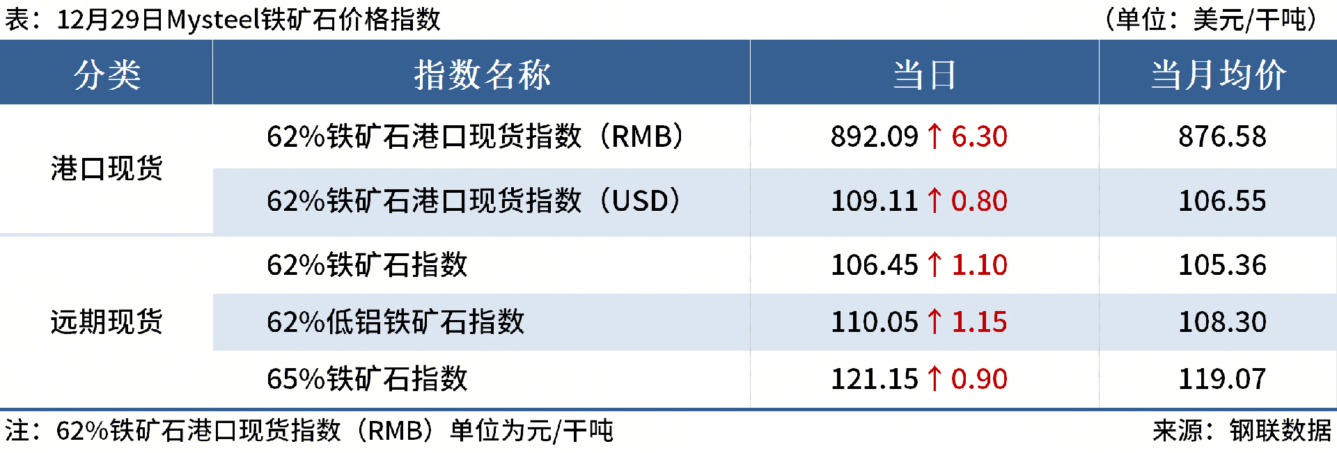 ◎12月22日-12月28日,全球铁矿石发运总量3677.1万吨,环比增加212.6万吨。澳洲巴西铁矿发运总量3059.6万吨,环比增加244.8万吨。