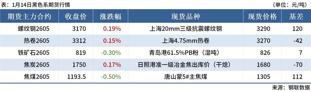 ◎1月14日,全国主港铁矿石成交123.10万吨,环比增46.4%;237家主流贸易商建筑钢材成交8.86万吨,环比增5.9%。