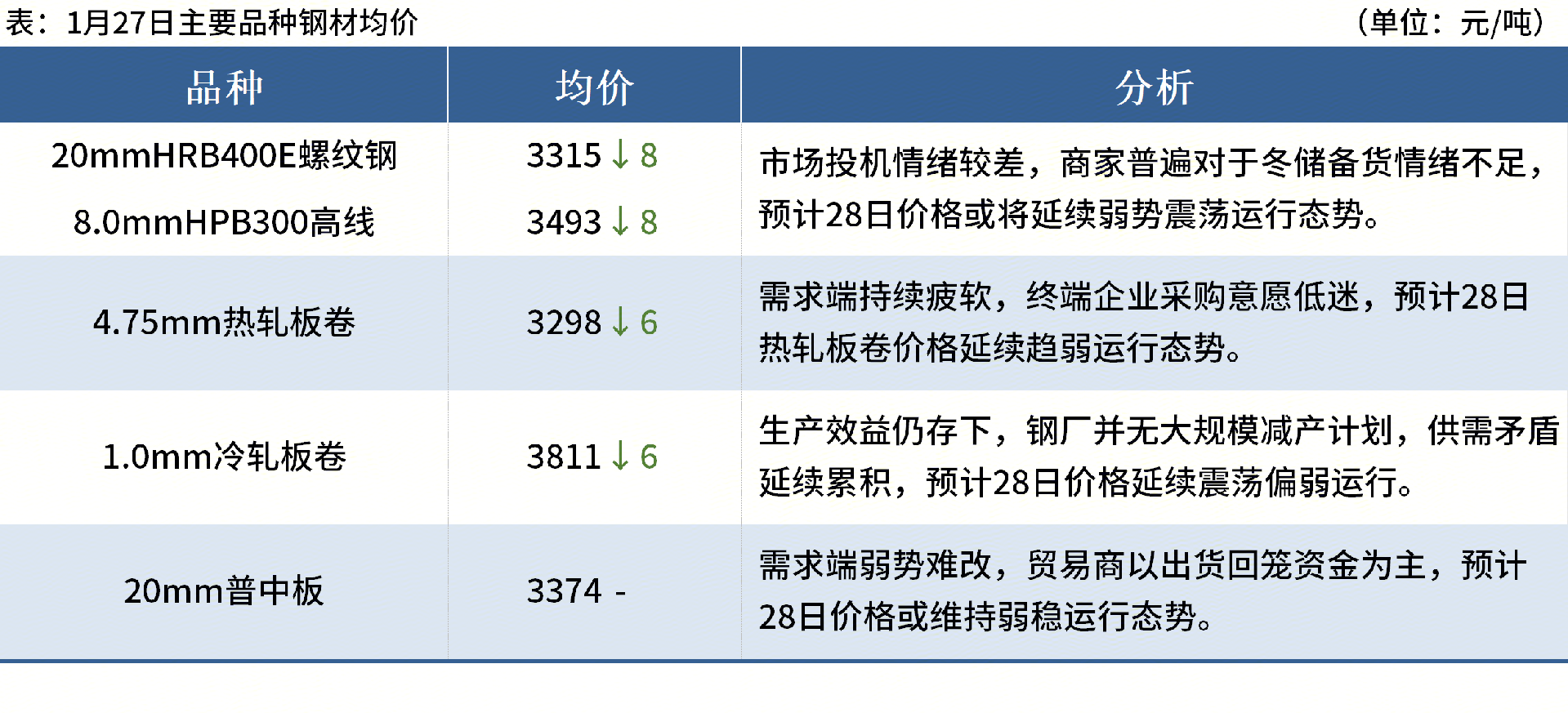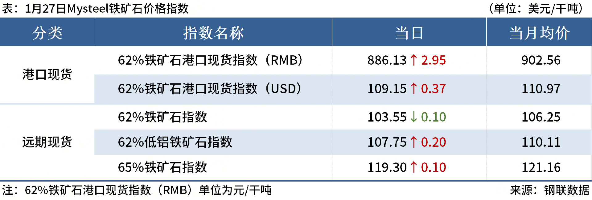 ◎1月27日,全国主港铁矿石成交80.95万吨,环比减23.2%;237家主流贸易商建筑钢材成交6.63万吨,环比减12.8%。