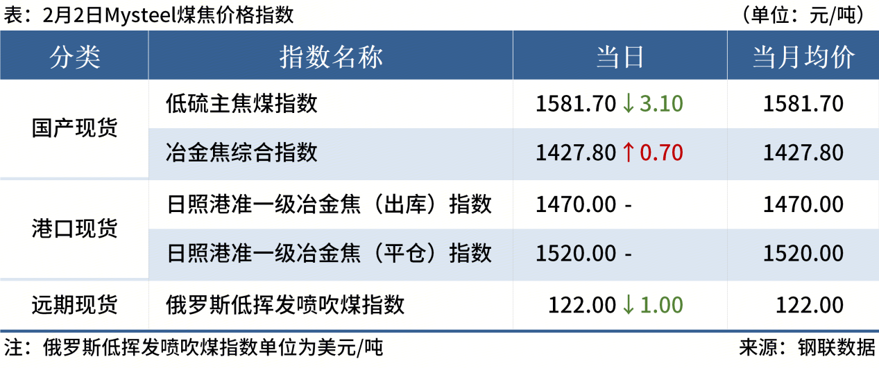 ◎ 2月2日,全国主港铁矿石成交81.70万吨,环比减9.9%;237家主流贸易商建筑钢材成交4.68万吨,环比减16.5%。