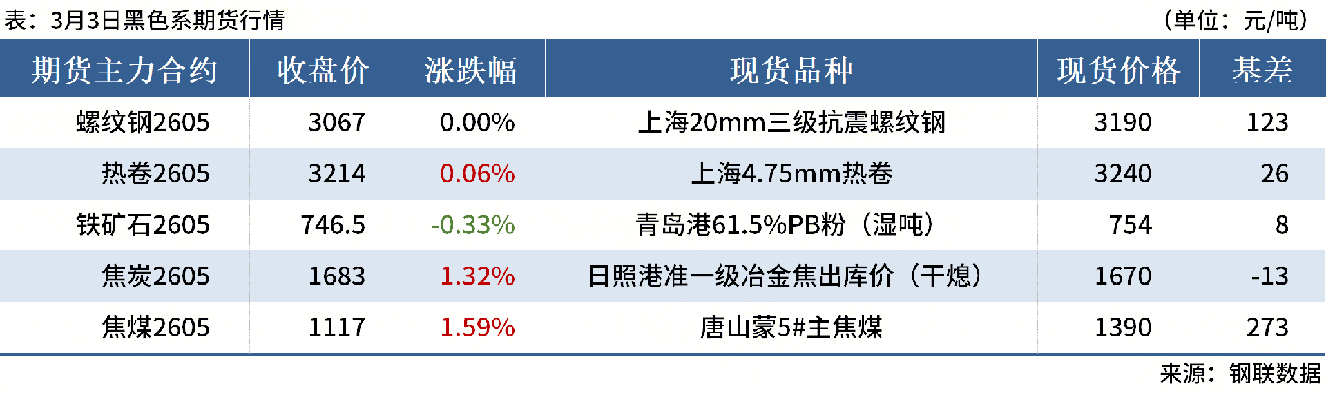 ◎3月3日,全国主港铁矿石成交85.78万吨,环比增22.4%;237家主流贸易商建筑钢材成交5.15万吨,环比增17.4%。