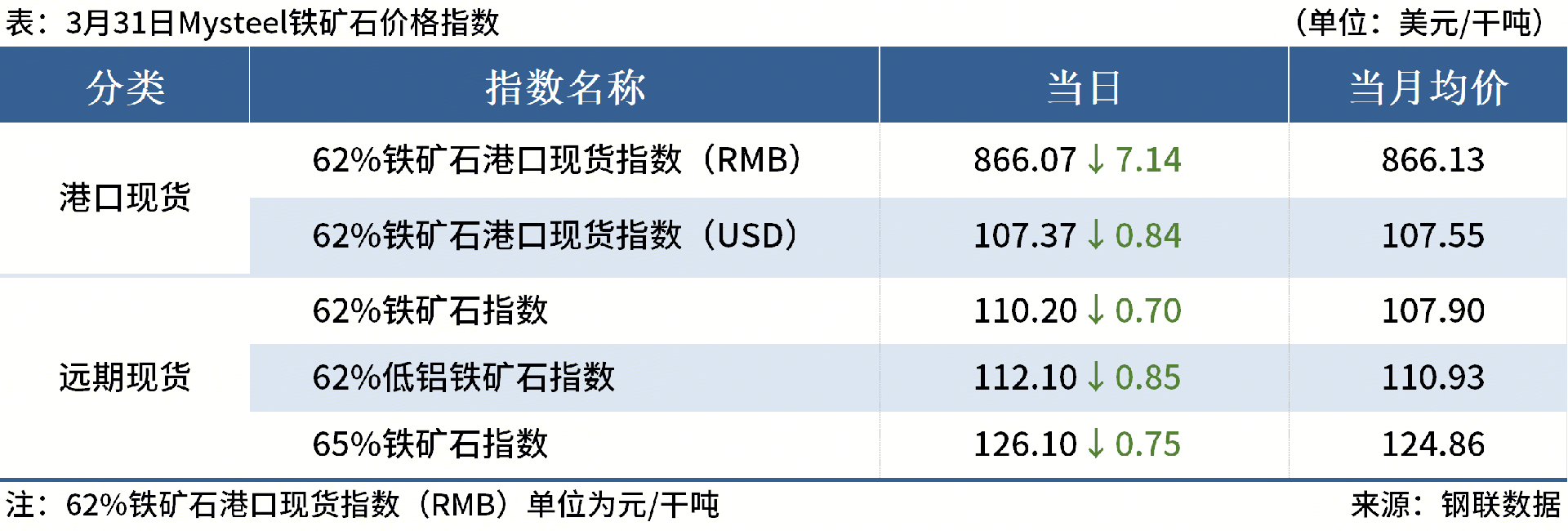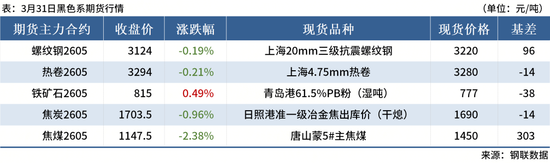◎3月31日,全国主港铁矿石成交117.30万吨,环比增98.5%;237家主流贸易商建筑钢材成交8.6万吨,环比减17.27%。