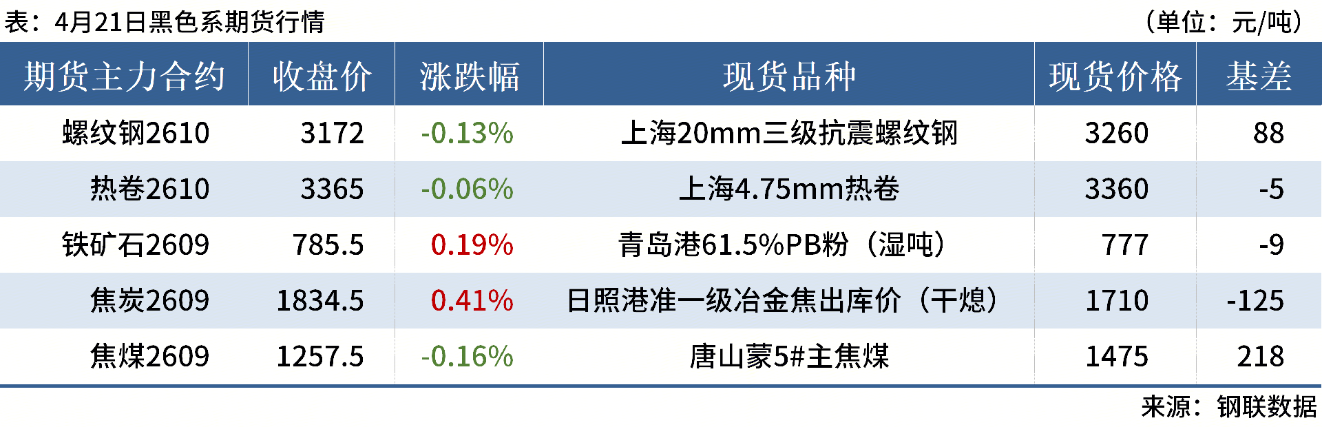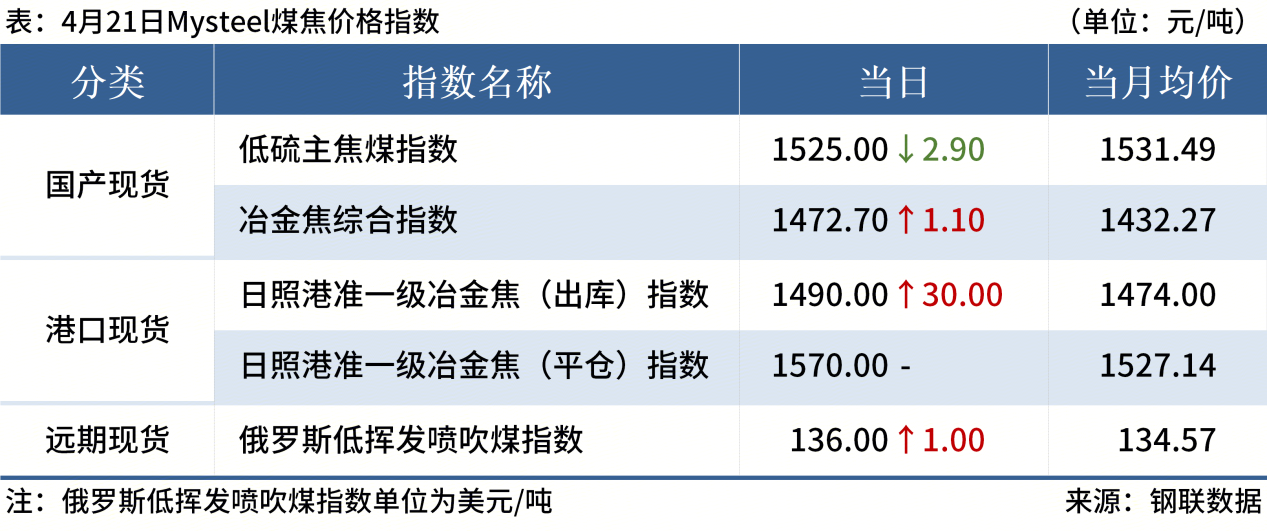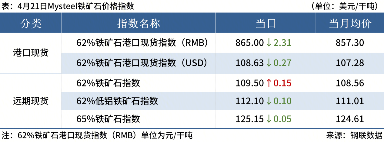 ◎ 4月21日,全国主港铁矿石成交70.82万吨,环比减13.6%;237家主流贸易商建筑钢材成交11.42万吨,环比减21%。
