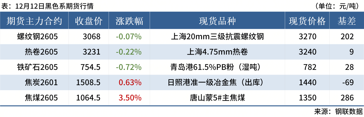 ◎ 12月12日,全国主港铁矿石成交87.60万吨,环比减11.6%;237家主流贸易商建筑钢材成交9.05万吨,环比减1.9%。