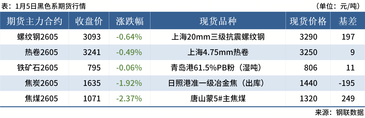 ◎ 1月5日,全国主港铁矿石成交101.17万吨,环比增121.9%;237家主流贸易商建筑钢材成交8.68万吨,环比减4.6%。