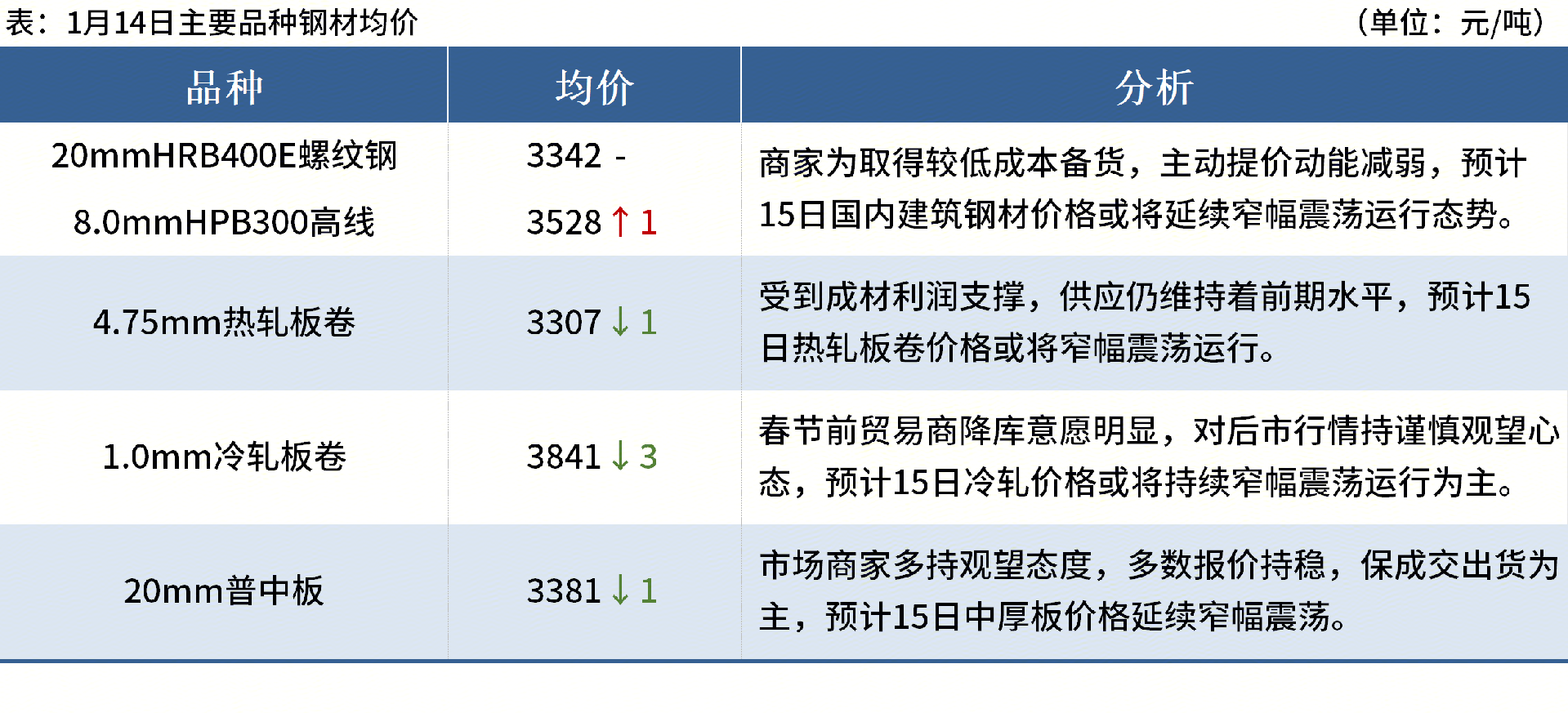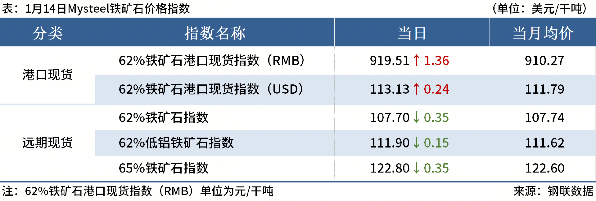 ◎1月14日,全国主港铁矿石成交123.10万吨,环比增46.4%;237家主流贸易商建筑钢材成交8.86万吨,环比增5.9%。