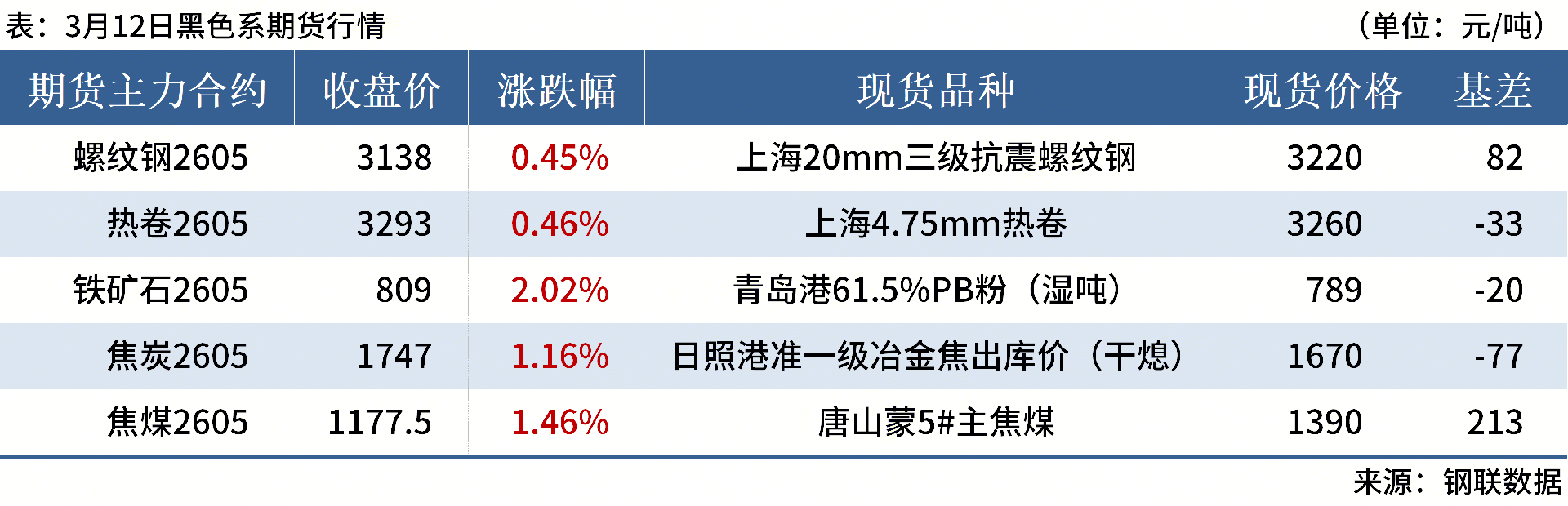 ◎ 3月12日,唐山迁安普方坯资源出厂含税上调20,报2970元/吨。