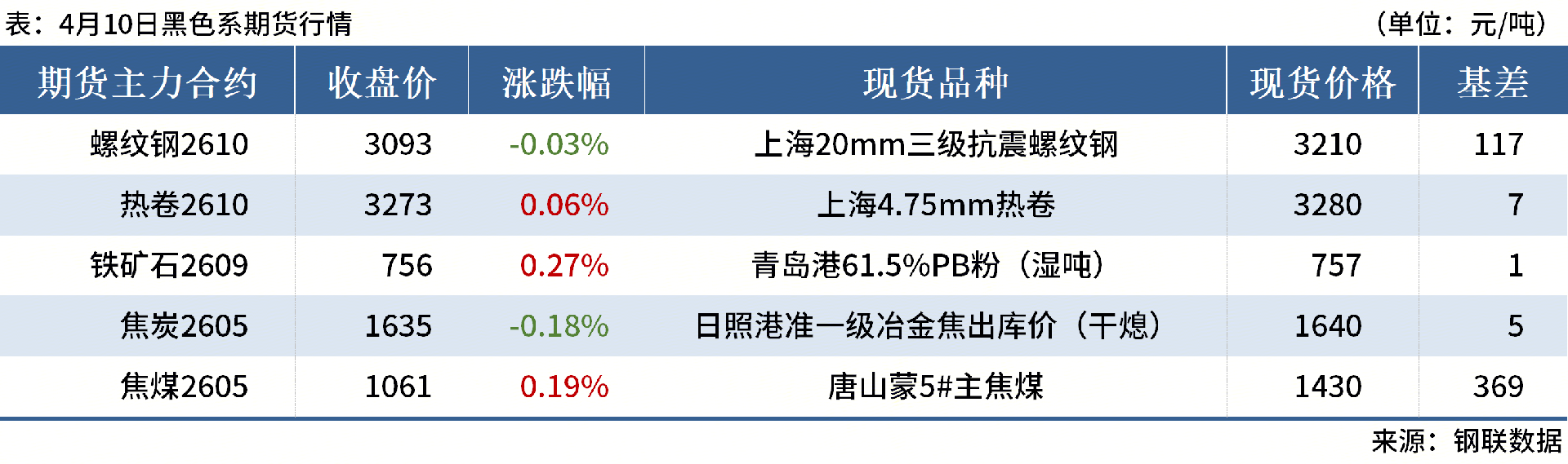 ◎4月7日-4月10日,全国螺纹钢均价为3322元/吨,周环比下跌0.21%。供应端,螺纹钢周产量215.59万吨,环比增4.1%;库存827.2万吨,环比降1.61%;消费量229.14万吨,环比增0.39%。