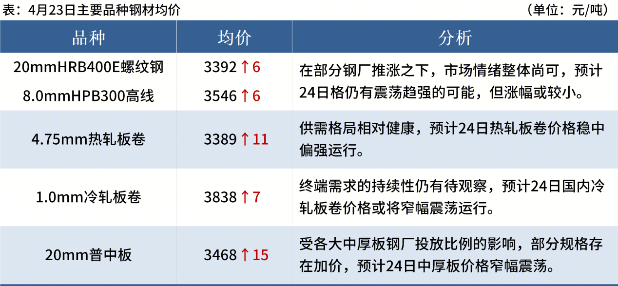 ◎ 武钢、信钢、达钢、武钢襄钢、龙钢宣布自4月27日起,萍钢宣布自4月26日起调整湖北区域螺纹钢部分规格加价,16、20、22组距加价均上调20元/吨,其他规格暂未调整。